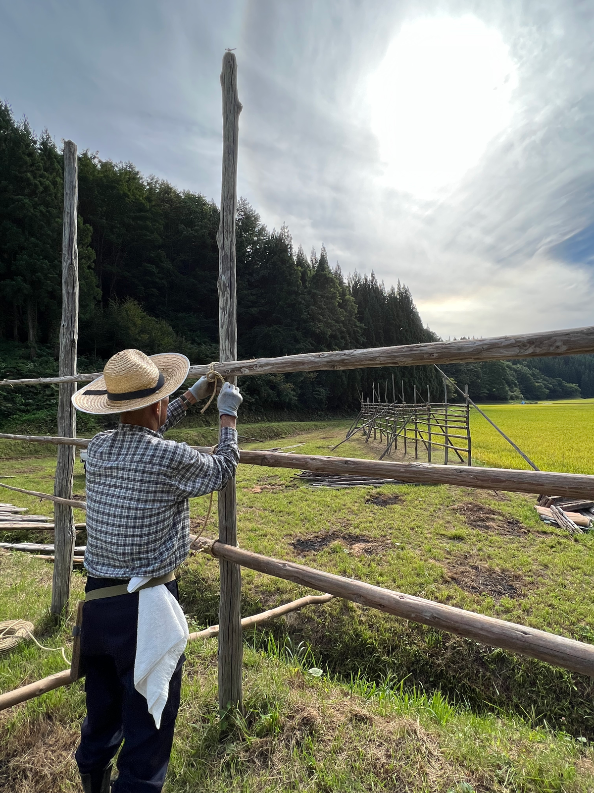はさがけ米とは、稲架(はさ)という木製の大きなハシゴ状の乾燥用装置に掛けて天日干し、自然乾燥させたお米のこと。